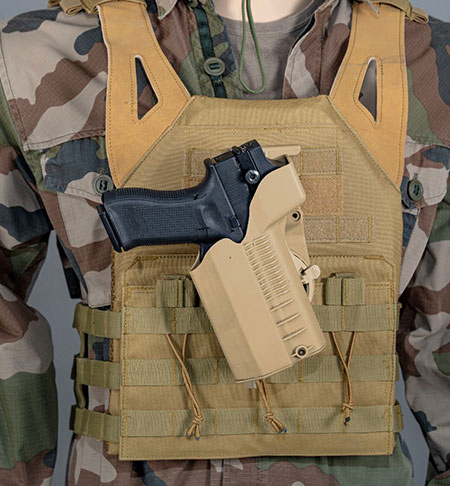 Kit Holster pour Pistolet "full" équipé : lampe tactique + RED DOT. Nouveau concept modulaire, breveté INPI , compatible avec tous les équipements MOLLE. Pensé pour apporter une sécurité maximale (système anti-arrachement) et une efficacité optimale sur tous les théâtres d'opération. Holster compatible avec les lampes TRL1 et TRL2, Red Dot TRIJICON, AIMPOINT, HOLOSUN...